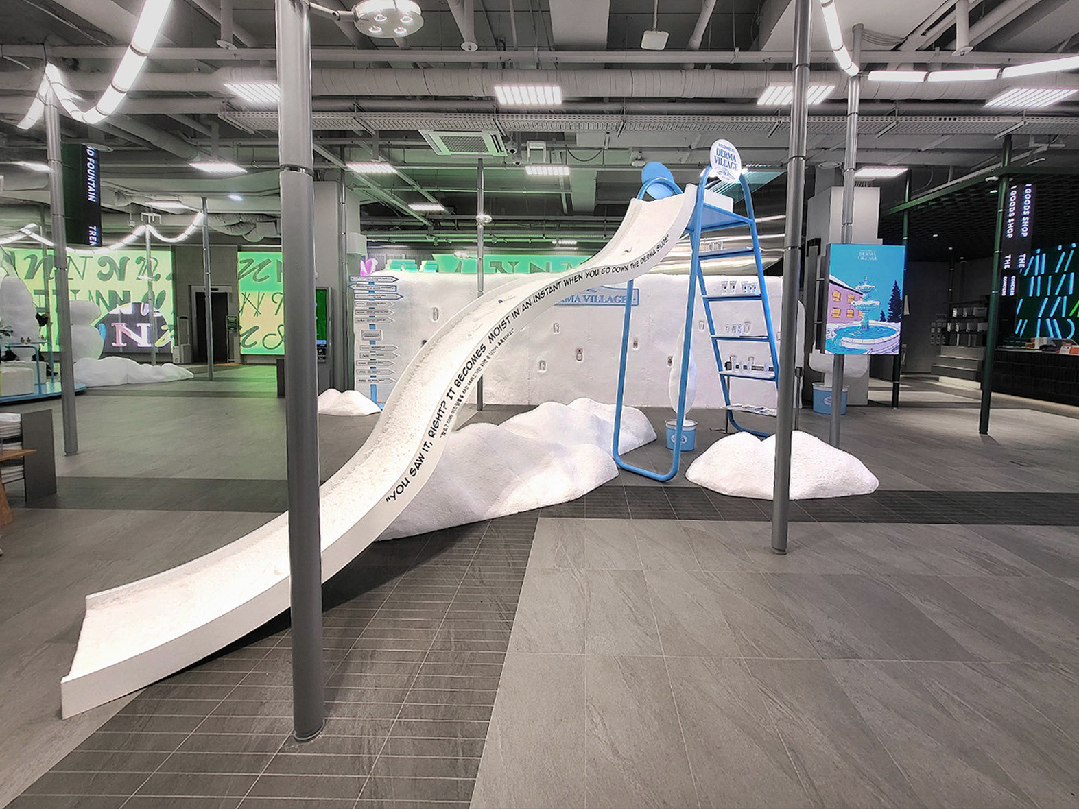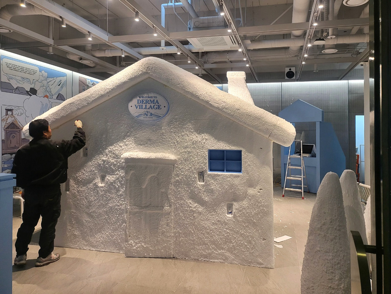 “Derma Village” was a concept space held at OLIVE YOUNG N Seongsu, designed to showcase and allow hands-on experience with derma cosmetic brands. Carving Daddy was responsible for producing key installations, including house-shaped structures.